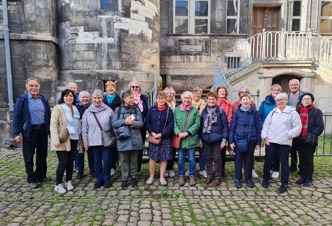 Nous étions une quarantaine de courageux à nous lever très tôt le samedi 22 septembre 2018, pour nous installer dans un car, que Fernando conduira avec souplesse durant le week-end. Quelques jeux et faits historiques, comme le récit sur la vie truculente du Chanoine Kir, ont permis d’animer les différents trajets.